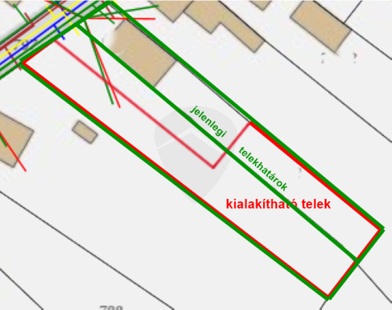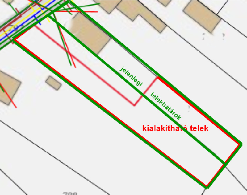A TELKEK KÖZÖTTI TELEKHATÁR jelenleg a terasz alatt húzódik, ezért az ingatlan HITELFEDEZETKÉNT NEM HASZNÁLHATÓ FEL, kizárólag KÉSZPÉNZES vevők érdeklődését várjuk. A telekalakítási tilalom feloldása után a TELEKHATÁR RENDEZHETŐ, és a terület szabályosan megosztható, akár egy külön leválasztható, széles "nyeles" telekrész is kialakítható.