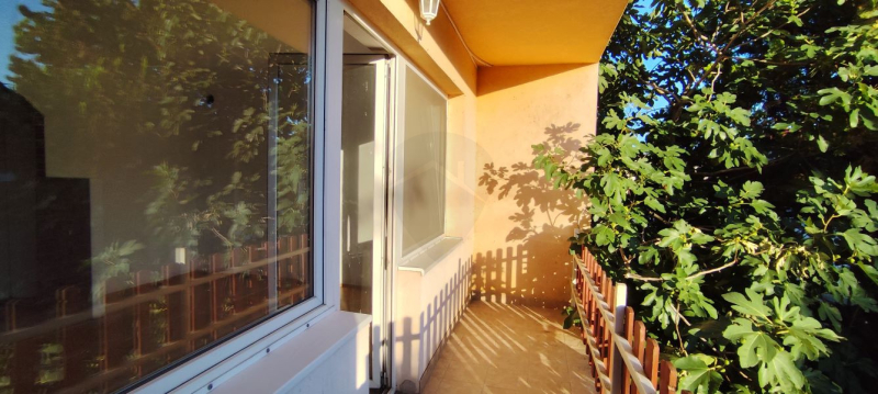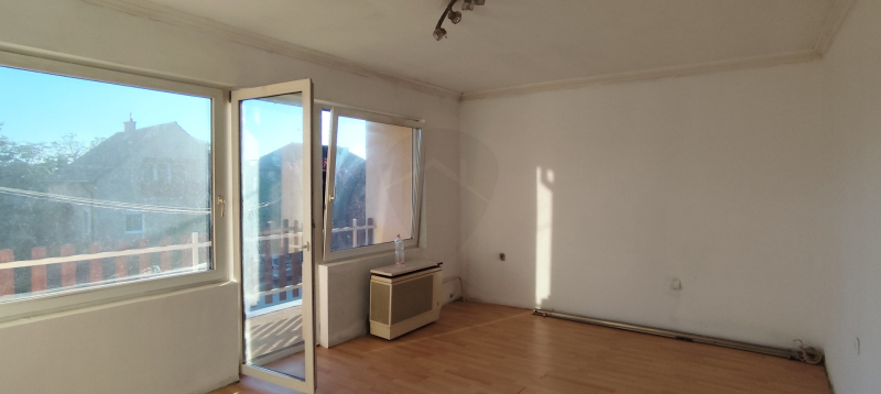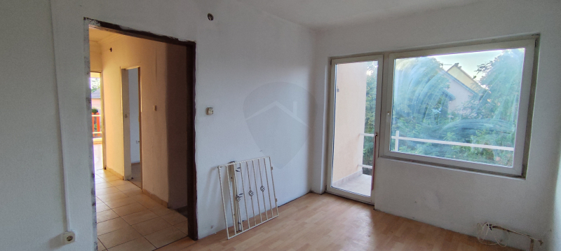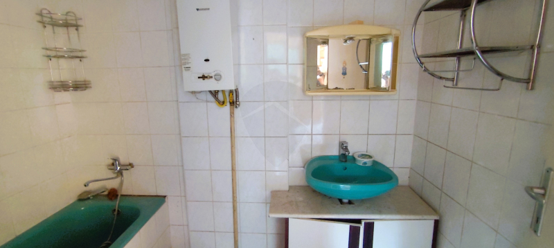 Szemben található a fürdő és WC, balra pedig a KÖZLEKEDŐN át egy ÉTKEZŐS KONYHA helyezkedik el.