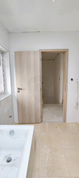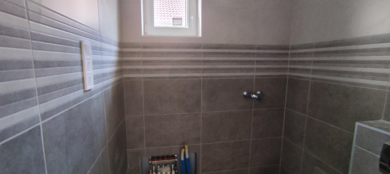 A Porotherm 30-as téglából 10 cm-es hőszigeteléssel készült lakás földszintjén amerikai konyhás nappali, 1 hálószoba, fürdőszoba, tárolóhelyiség, külön wc, emeletén pedig 2 hálószoba, fürdőszoba wc-vel és gardrób került kialakításra.