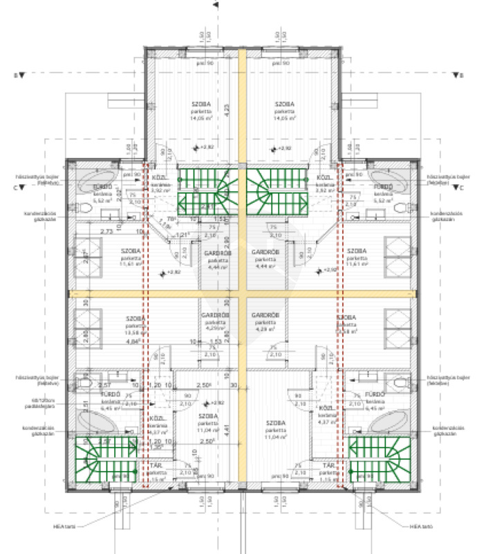 A lakások fűtése padlófűtés, kondenzációs gázkazánnal.